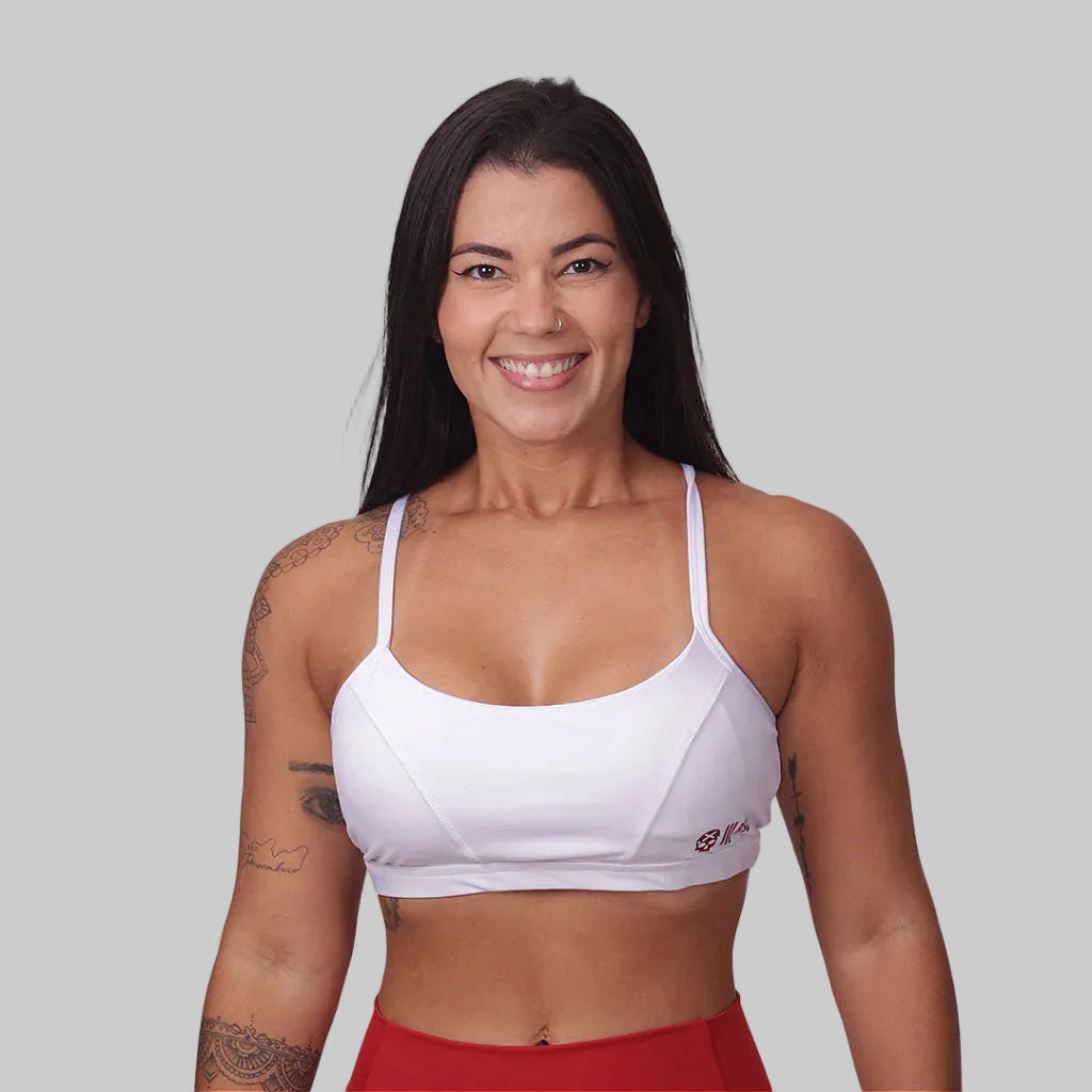 Top Fem c/ recorte costa e Alças - Branco/Vermelho